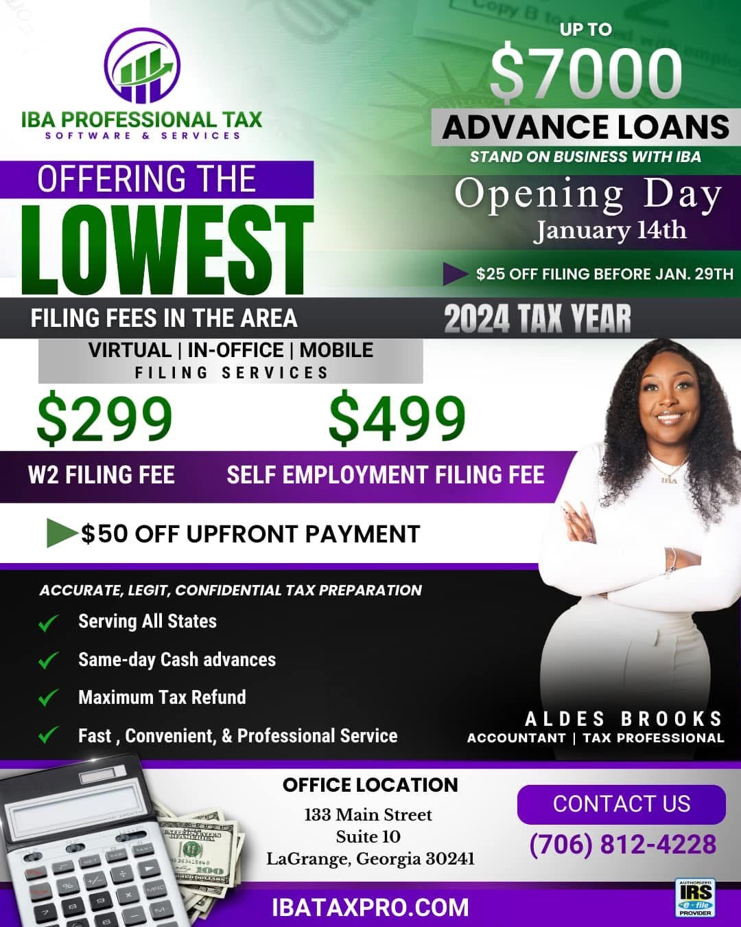 Our office is open for scheduled, one-on-one office visits. The new private office for IBA Tax is located in the beautifully renovated Abbott Building, located in the heart of downtown LaGrange, Georgia.